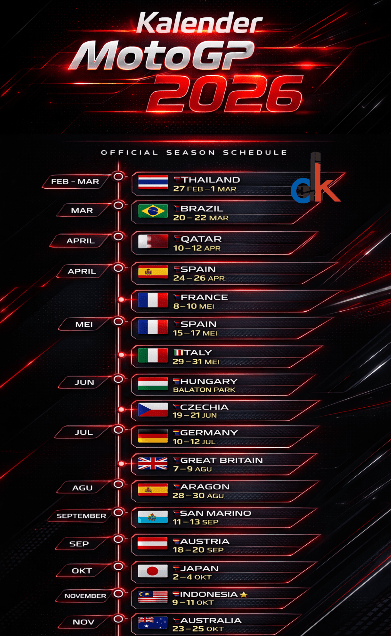 Read MorePanas MotoGP belum benar-benar reda sejak final dramatis musim 2025 di Valencia, tetapi atmosfer panas sudah kembali terasa saat ini. Menuju musim 2026, tim-tim elite bersiap memperkenalkan motor terbaru mereka. Pada akhir Februari ini, akan menjadi awal dari segalanya. Tes pramusim dimulai di Sepang pada 3–5 Februari 2026 sebelum berlanjut ke Buriram pada 21–22 Februari…